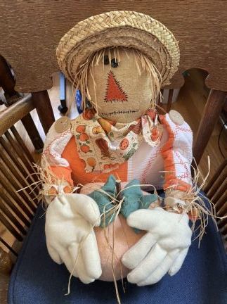 And the same yard sale I got this cute Pumpkin Scarecrow for $3.00! His body and arms are made out of an old orange and white quilt. I love him and he looks great in the rocking chair. Happy Sunday Farmgirls.