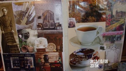 Our leaves are flying around as well, Nancy Jo, I admire them like confetti falling. God did do a wonderful job with Fall. Clouds rolled in today, winds picking up, we're due some rain off and on for the next week. Temps are cooling down, 50/30's now... I'm ready to cozy in, I think. Your scrap booking pages are always so pretty. So nice of your daughter to bring you magazines, I always hate throwing them away, they are so expensive these days. I often pass mine on to our neighborhood little book swap / librabry box we have. Enjoy your scrap booking, those cups of tea look wonderful!
