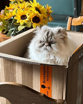 Sissy looks like she has enough insulation to make it through winter. She's a box baby -- what is it about cats and boxes....