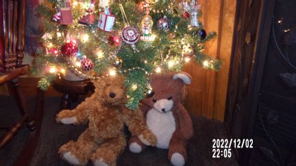 LOL!!! Nancy Jo, it looks like the Boys heard you and are bright and happy to be out under the lit up tree. They are sweet bears!! Tell Jack and Dave I hope Santa has some honey treats to place in their stockings this year!!