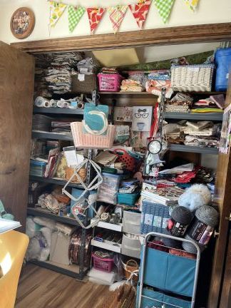 Oh my stars!… Either a bomb went off, or the elves have snuck in at night and destroyed my sewing room… Heaven forbid that I fess up and admit to having too many projects going at once and not cleaning up after myself…
