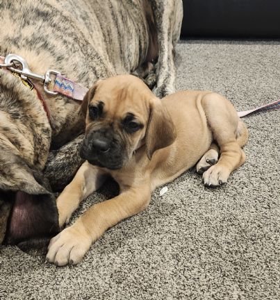 Our Great Dane(Maylee) was not handling the passing of Ady very well. She was very depressed and would stay in bed all day. She was even skipping meals. So we decided it was best to get her a new companion. Since bringing home our new dog she has returned to her happy self again! We picked out a Fawn Great Dane and named her Kiara! She has kept me very busy these past couple of days, but it makes me happy to see how happy she makes Maylee and the kids! Her first vet visit with us was yesterday and she is already 10.8 pounds. She's going to be a big girl like Maylee!