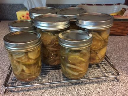 Yesterday I put up my annual Bread and Butter pickles using my Mom's recipe. Our daughter's family garden exploded with cakes last week so it was time to get busy! I make these every year and they have become a favorite of my girls as well as my one brother and sister. Mom's tradition continues to live on!!