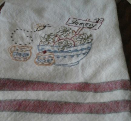 Here is a better photo of towel. Isn't it pretty? Such tiny little stitches! |