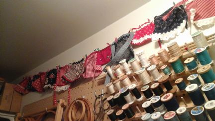 As for the mini aprons, this can be a project that Farmgirls can decide how to do or skip. Denise, can you post your mini apron bunting you have in your sewing room to share here? Linda, can you share some of your mini aprons as well to give others an idea of what they look like? Or, interested folks can just go over to the Chatroom and read up what has been posted for more great ideas. Grace(katmom) has a few posting with her big collection of mini aprons.