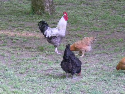 We had 3 roosters in our first batch of chickens. They found out who was king of the roost and everyone was happy except my son. The kids named them but I've forgotten what they were. It was many years ago. We ended up getting rid of the first one because he spurred Jbear in both knees. Scars now reside there. He was tasty enough. The second and 3rd came into the spot has they fought for it. The second was also butchered but was given to friends of ours after butchering. Number three was sold with a hen to an older neighbor. We no longer get roosters but have butchered hens when they are done laying. They are not as meaty as those raised for that purpose. We have not butchered any of this last batch because they keep getting downsized by the foxes. I don't have the heart to butcher and clean any more. These are so tame. Growing up on a chicken farm we raised layers and we butchered twice a year as we had between a 100 and 200 chickens. I hated the plucking part of butchering. In fact, if I knew it was coming I would always try to be elsewhere. However, we had many hands as my aunts would all come to help and they would take home meat and eggs. |