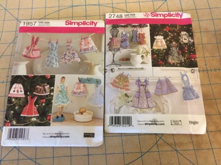 two Simplicity patterns are available for mini-aprons. I have them both and used one to make my half apron for the swap. There will be a couple more mini-apron swaps starting pretty soon. They are #1957 and #2748