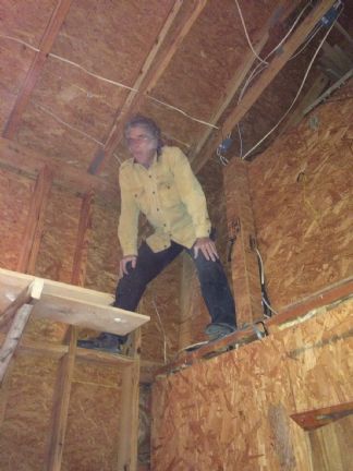 Yesterday we accomplished a lot, though it still doesn't look that way. My shoulders, knees, hips and feet hurt. I managed to get 2 contractor trash bags full and out the door with Ed this morning - he can put them in his dumpster at work. He also took 2 large boxes of paper for recycling and several other large items for disposal. He also put up some wooden brackets in his garage and then we put somme long wooden trim pieces on them. The garage is tall, and the brackets had to be above the many windows on that side of the garage and were pretty far up, so Ed, as many men do, was often doing one of those "kids, don't try this at home" maneuvers. LOL! Here's a picture of him - ready to receive the next long pieces of wood I was sending up to him. He couldn't stand up - the room had lots of roofing nails sticking through and he did hit them once. We had to clean the garage floor to make room for some of the stuff in the room we need to clean out for his sister before her arrival in mid-April. And after this clean-up he has already reserved a timeshare room at Bonnet Creek in Florida on the Disney property. We will need some R&R. He will owe me more than that. LOL! |