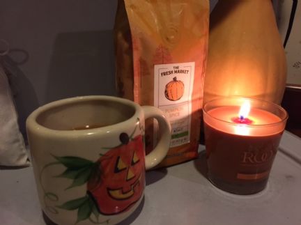 Hey everyone, you know how much I love Fall. Well today, the local Fresh Market store had their new 2017 Pumpkin Spice Coffee!! This has been a favorite of mine for more than a decade and I look forward to it's arrival every year. Plus, they also had their new Root beeswax fall candles with my favorite Mulled Cider. So, despite the fact that it is 90+ degrees outside and debilitatingly humid, I am in the AC enjoying the first mug of the season and the sweet smell of my new candle.