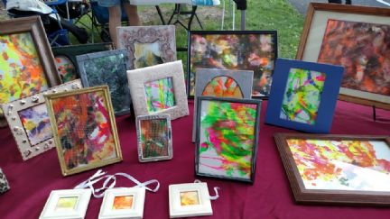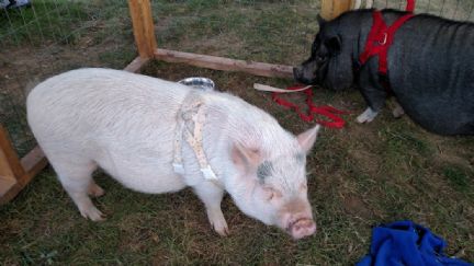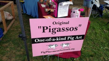 Erik, my FIL and I went to a local veggie fest. The piggie art was made by the pigs noses on canvases with pig-safe paint. Children would paint and then the pigs would add their addition and they would become "pigassos." It was all to help pig placement (adoption). Lots of great food, great music, great people!