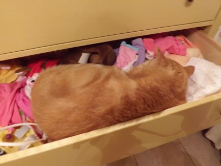 Oh I missed this Day! I love, Love all your Cat Babies!! I have 6 and they are a comfort and joy to me!! This Opie doing what he does best, finding a cozy place to sleep! This is Lily June's drawer at my house!