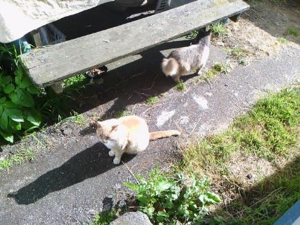 | Cats are funny. If they live inside they "rule the roost." If they live outside they tend to roam. The cat my sister and brother had when we were growing up was a big black Tom cat. He was 14 when mother moved and took him to their new home. He had no ears. Too many Tom cat fights in his life time. I would rather listen to my chicken and rooster noise than Tom cats on fences arguing over their territory. We have Mr. Twister who is 16. The girls have two kitties that live outside, and are closed up in their cat palace, also known as the well house, at night. So far, so good. The coyotes have not gotten them. |