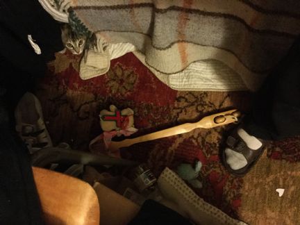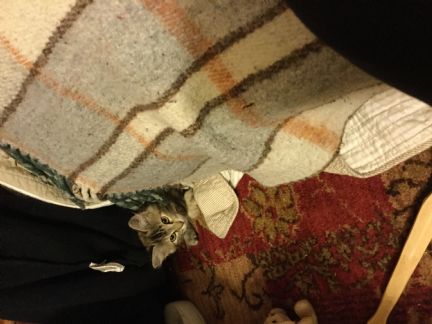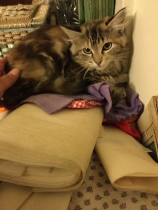 This is a new addition, about 3 months old and shy, i have held her a little bit and still am working on her. She cuddles in when I hold her but hard to get her to hold, I am not sure exactly if she is a boy or girl so her name is Tiny Penelope Frederick and I think it will stay that way. Have a happy international cat day. |