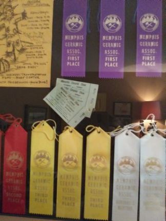 | Connie, what a great story about your painting history!! You did a wonderful job on the clown shown here. My Mom dabbled in painting some pottery and then gifted them to all of us. From her days , in the 1970s, I have a mini Christmas tree with the little colored lights that fit in the holes, a pumpkin plate, a small pain ceramic pumpkin whose lid came off, a little witch and ghost figurines, and a bathroom cup with strawberries on it. It was a very popular craft opportunity when someone had a kiln and the raw pieces to finish and paint and decorate. It always looked like a lot of fun too! Love all of your ribbons that you were awarded !! |