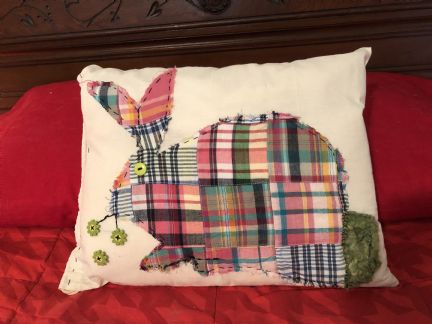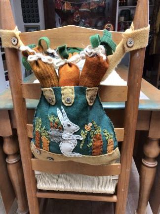 2. A wool pattern but I used patchwork fabric from Hobby Lobby. The rabbit's tail is made of wool yarn Jill on MJF gifted me that she spun.