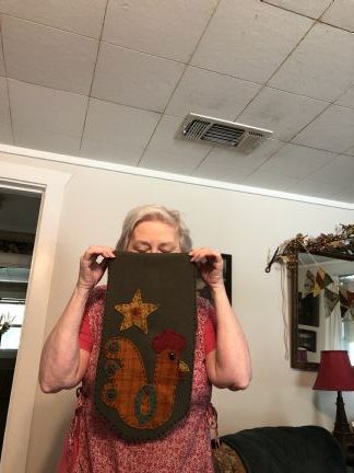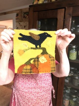 There is a very camera shy person behind 2 of the projects. LOL She was nice enough to gift to me the one with the crow and pumpkins. Thank you, Sara. |
