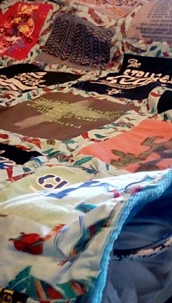 Connie, about 15 years ago I got a phone call from some woman in Fort Worth who needed some tee shirt quilts made. She had seen the one I made for our former city manager. ( I taught with and commuted with his wife). They hung his as a curtain over the patio doors in their den. But when I met the woman to get the tee shirts...I was shocked! She had tubs full. Notice I said tub with an s! They had two of every rock and country concert they had ever been to. Then they had his memories from HS and college, then they had their vacation shirts, then they had his marathon shirts. I was working long long daycare days, and it took me a while. Finally I called her and she came to get them. She was happy about her memory quilts but not too happy about the price. They are a lot of work, which people don't understand! |