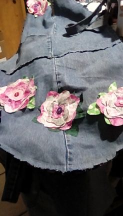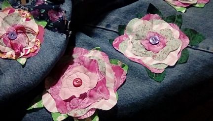 Those are so cute, Marilyn. I'd love to see a full view of the aprons. Looks like one uses the reverse side of the jeans? I love the flowers, too - they will also fray after washing.