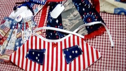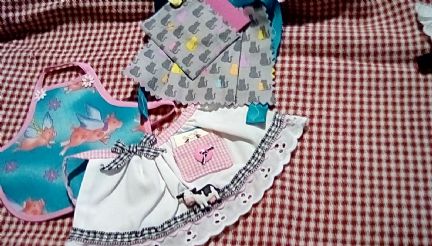 As was usual in some of the swaps I've hosted, there are always some very creative items. Here is a pattern for the full apron. People use these for dish detergent bottles and larger for wine bottles. It may even fit a Barbie doll. LOL! Here is a picture of all the farmgirl mini aprons.