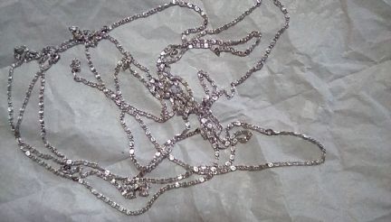 Sara, these necklaces are the only thing I found in mother's stuff. I love that they almost sparkle. I don't know what they are made of, but I wear them because they don't make my neck itch like modern chains do. I have actually cut the clips off of some old earrings and glued on posts, so I could continue to enjoy them. |