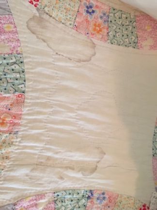 I also did not try hydrogen peroxide or lemon juice . After all the washings with BIZ, I decided that I would stop because the stains were much improved and I worried about breaking down the thin old fabric integrity and causing more tears. I might try all of these recent suggestions another time just to see what happens. Have you ever been more worried about going too far and causing new problems rather than stop at the success you made? This is sort of how my thinking is at the moment. 99% of the quilt is perfectly intact and all of the old age yellowing stains are gone and most of the original big ones. Maybe it is a matter of "leave well enough alone"? LOL!! But thank-you all for your ideas because they might help me in a future endeavor! |