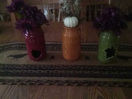 My daughter came over this morning and brought a little something to celebrate the start of fall. The red one says blessings, the yellow says blessed and the green says grateful.