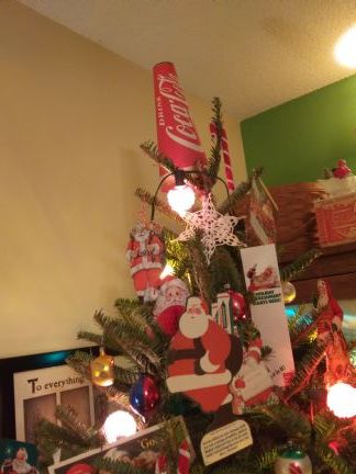 My real tree, Vintage Coke Santa Advertising and Vintage Bank Christmas Club Savings Santas. I have to have a real tree too, most years, always little. .jpg?v 39280415) .jpg?v 30486849)