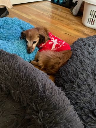 This is my Charley, my saving grace. He's a long haired Chiweenie (chihuahua and dachsund). He is soooo full of personality and has brought so much joy to our family. My sweet baboo.