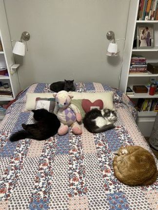 And the “boys”…Cubbie on the pillows, Little B on the left, Charlie on the right, and Thomas at the end. Three of the four don’t like to be touched or have people near them…the orange one on the other hand…well, he is orange. And he is amazing.