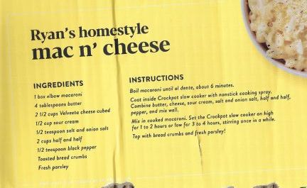 I recently got a new CrockPot. This recipe was on the box. I made it last night and it was awesome. I had ham steak and asparagus with it but it was too much food. The Mac and Cheese would have been enough by itself -- it was so rich and delish.