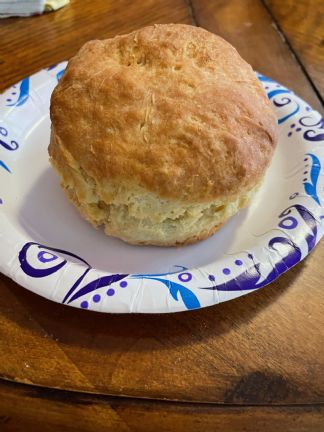 Kent made us Homemade Butter milk biscuits this morning to go with my milk gravy and bacon. Yummy! |