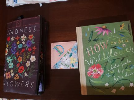 Thank you, everyone…. I feel very blessed. Blessed to be part of this group of fabulous ladies and blessed to have our MamaHen :). You are all the best and I feel fortunate to call you friends. I got my surprise package and want to share with you….unlike Dianna, I had not heard of this Wildflower book but I am so excited to have found it now! It is so pretty…. You can really get lost in it. A beautiful monogrammed bookmark and the cutest tote bag! I’m getting ready to pack it up for my next class so I can get show it off and spread some WF love. AND….some fun reading material! First article on my list to read….How to Feel Like a Kid Again!!!! Haha!! Thank you, Debbie….you spoil us…much love! |