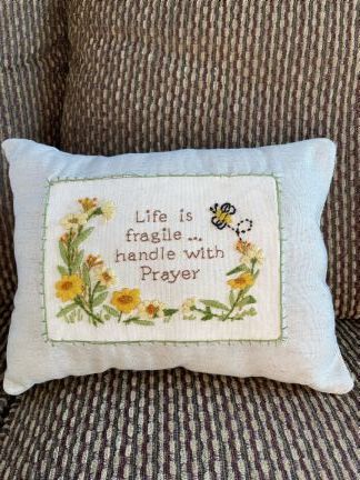 I just received Wanda's sweet pillow yesterday and I absolutely love it! I love the story behind it, as well. Wanda had done the embroidery when she was a teenager and had it framed and hanging in her house. During her recent move, she decided that she was short on wall space and wanted to share it with someone else and let them enjoy it...and I'm the lucky one!!! See photo in the post below. Thank you so much, Wanda Sue! It will have a special place in my home. P.S: Your stitching is lovely!