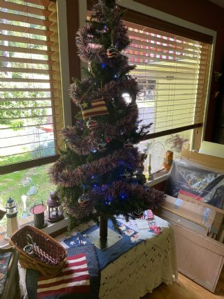 My red, white and blue tree. As I find more decoration they will go up plus we are working on our flags and getting them out. |