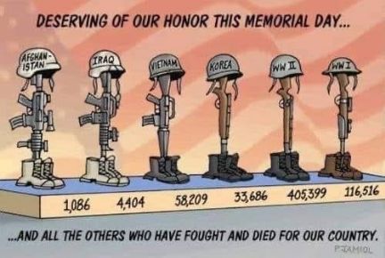 As we celebrate the holiday weekend with our family and friends let us never forget the Men and Women who died to protect us . Let us honor each and everyone and their families for their sacrifices. |