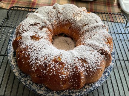 My BIL will be 71 tomorrow so I made my first ever cake from Scratch! Wow! I give all Farmgirl Wildflowers who make their cakes and everything from scratch a big high five. I made a Peach Pound Cake! It took me an 1 1/2 just to get it all together then an hour in the oven. It turned out great! It looks great and if it taste half as good as the batter I will be happy!
