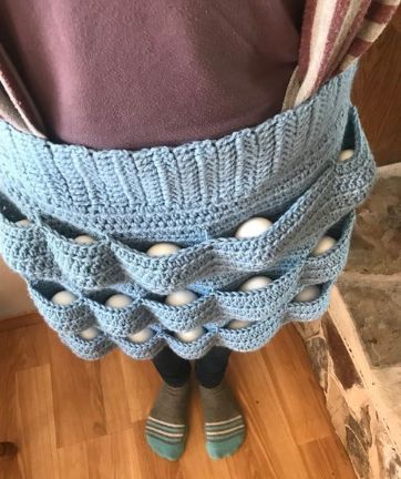 That is an adorable apron, I wish I could crochet better.so soft for the eggs. Very cute! Hugs Darlene |