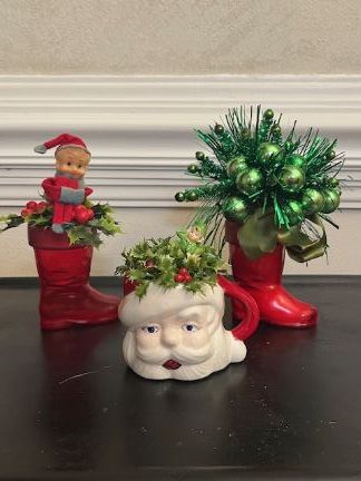 Last week when I took Caroline home I stayed a few days with my best friend so we could do some crafting. We both love vintage - and vintage Christmas is almost an addiction for us. We spent three days crafting with our vintage Christmas finds and so I thought I'd share what I created with my collection. I'll divide it up in a couple posts so the posts won't be too picture heavy. When my friend retires from teaching this spring, we might try to create a little side business with vintage holiday crafts.