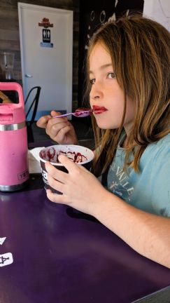 And celebrating a successful summit over acai, thinking Fallon beat me to finding the perfect lip color... but I wanted to try to erase the distracting ad on the top of the table and messed with one of the preset filters ("punch").