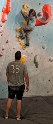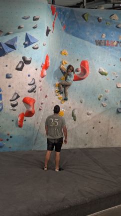 This morning at the climbing gym, inspired by photographers that captured candid shots of kids not looking staged and happy. Then tried cropping it and letting the software auto enhance it. Still don't think I got close enough to convey the terrified expression. Frustrated that photos of things that are steep don't look nearly so steep in photos.