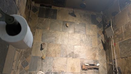 And as long as we're being edgy and taking pictures of bathrooms, might as well capture the view from our home "throne." We used to have a clawfoot tub in here with a shower curtain and Jens got annoyed that when you turned the shower on, the curtain would vacuum in and attack him. So now it is a wet room with non-load-bearing climbing holds. This also had me thinking about a quote in some photography book about 99% of photography being rearranging the furniture. Does anyone else feel compelled to tidy because there is some distracting clutter in the background of your shot?