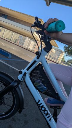 I took this one as a joke for MJF first aid badge because we even squeezed a kit on Fallon's new "vehicle" a geared bike. But this shot just feels so "arty" to me without doing anything to modify it. Maybe it was the low in horizon afternoon sun and how photographers say they like working at dawn and dusk? Or that theory about zooming in way more than seems appropriate? Or maybe just all these lines of bike frame and legs? I don't know.