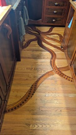 Hard to believe a dude chugging coffee out of a Mr. Coffee can also inlay a squid in the floor of your steampunk kitchen renovation...