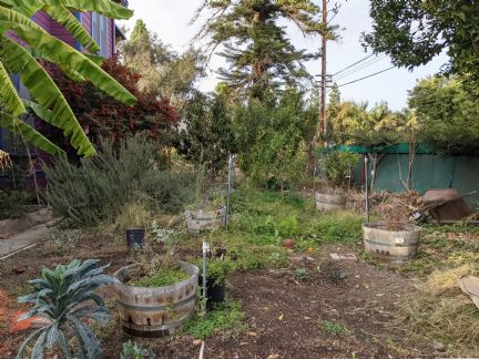 More bean drama. Fallon and I bought a half dozen varieties of pole beans from Rancho Gordo -- the $7/lb for eating ones. Then we planted them along a fence to see if we could make our own landrace version. We think Coronas and Scarlet Runners won, but we neglected to consider that we planted the north side of the fence and most of the beans followed the sun and grew south onto our neighbor's side of the fence so we can't provide a full report.