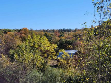 Happy October. Our leaves have been slow to change but I don't mind seeing some green mixed in with the yellows and oranges. I'm more of a summer person so I was a bit sad when we had a frost last week. Here is the view from my front porch.