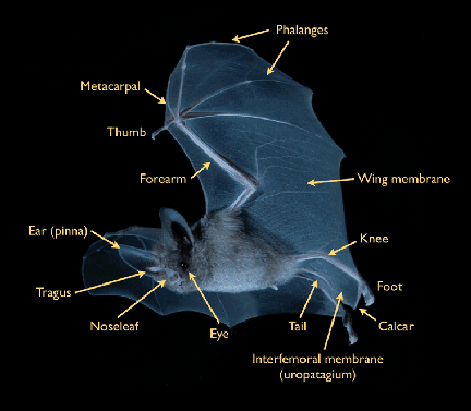 Bats are the only mammals capable of true, sustained flight. Other mammals, like flying squirrels, can glide, but bats have evolved the structural adaptations for powered flight, allowing them to ascend, descend, and change direction at will. Their wings are formed from a membrane stretched between their elongated finger bones and bodies. |