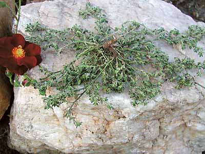 Not grass, but knot weed, Polygonum (proper name) is an ornamental, low-growing, turf-like plant that Ive been cultivating at my farm for several years now. Why? Its easy to get rid of easier than grass when you decide its time to go; its tough as nails (grows in my gravel roadways); its drought resistant (actually, I think it lives without water!); it hugs the ground (permanently mowed); and it stays green. It never needs limed, fertilized, aerated, dethatched or butyled. Its a scruffy stranger that Im head over heels mad about. Ive helped it spread by clipping the tiny flowers full of promise and carrying them with me to places where I need tough turf, like in front of my porch steps, my chicken coop, or along the base of rock walls. I love the way it slowly spreads into my gravel pathways and roads. On some of my compacted roads, its found a permanent home up the middle, giving me velvety green relief from crushed granite rock. I even have a sturdy patch at the base of my steps; and when it rains, its the perfect doormat for wiping my muddy feet. To buy some Polygonum aviculare seed, go to www.sandmountainherbs.com/knot_grass.html.