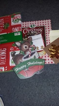 kelly on my goodness. I love my gifts. My vintage little reindeer,my drying mat and gooseberry book. They are so me . Thank you, thank you,just loved this swap with you my friend. The little reindeer will be by the tree, the drying mat on sink counter and gooseberry book on side table where I sit. Yay.#128522;. Thank you again Kelly.Hugs Marlee