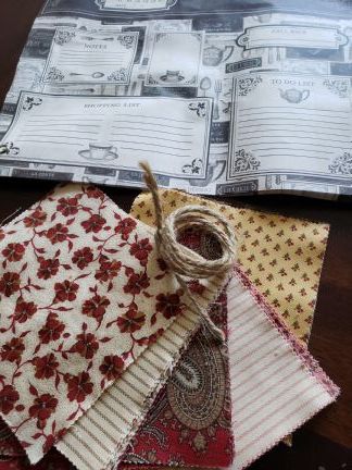Well, I finally made it home from running my errands in town and stopping by our wee po this morning ( gave them a piece of my mind too Deborah for false info) and couldn't wait to open my package from Debbie! Isnt there a saying that we save the best for last? Wow....I'm am so thrilled with my "catch all" Debbie! I adore it and will use it for a LONG time to come! Its the coolest! Quilted side, denim other side, inside/ outside pockets for goodies, of which she sent plenty!! I ADORE the bee 10" squares!! ( love love the bees) and a generous amount of fall 5 " squares! Then the pockets were stuffed with b& b hand gel, almonds, inside pinned was a small sewing kit, stencil paint brushed, calendar type to- do lists, a pocket tea kit with various teas and ribbon and a thumb pin cushion!! The sewing kit is wrapped in a denim belt loop, ingenious!