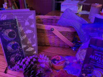 Julie I got your box yesterday and couldn't wait to open it. I love all the sweets and goodies, but my favorite is the potpourri! I placed it in a pretty bowl in my mother-in-law's apartment where I've been staying while my husband had COVID, and it makes the room smell wonderful. I also love the stitched items- did you make them? The bowl holder is exactly what I need, thank you. It arrived after a busy day and really lifted my "spirits."